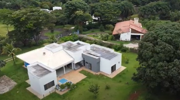 Móveis planejados também na sala de TV e sala de estar, cozinha, lavanderia, área gourmet e banheiros.O imovel tambem possui poço artesiano com 106 m² de profundidade e com vasão de 4.000 mil litros de água por hora. O poço já está registrado com a outorga em dia e todo aparelhado, aquecimento solar que aquece a água dos chuveiros dos 5 banheiros e as torneiras de pias dos 5 banheiros, as duas torneiras das pias da cozinha e a torneira da pia da área gourmet.Tem também uma usina fotovoltaica. A chácara toda gramada, com várias espécies de plantas no jardim e pomar formado com várias árvores frutíferas e de cerrado (o que nos proporciona, todo ano, um bom desconto no iptu) tais como, pitangas, acerola, jabuticaba, caju, caqui, mangas, goiabas, amoras, limão China, mexerica, Araça, bananas prata, ourinho, roxa, ipes amarelo, ipe rosa, acácia, chorão, canela, romã, tamarindo, seriguela, coqueiros em plena produção, sibipiruna, flamboyant e mais algumas espécie de árvores do cerrado. Possui também uma edicula com 1 quarto, sala com cozinha conjugadas, banheiro, varanda, e mais 1 casa para ferramentas e quadro de distribuição do poço artesiano e garagem para 2 veículos.